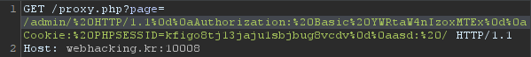 즉, 우리는 지금 proxy 페이지를 통해 /admin에 접속할 수 있는데, 이때 로그인 정보를 넘겨주어 admin으로 로그인하는 요청을 보내야 하는 것이다.
