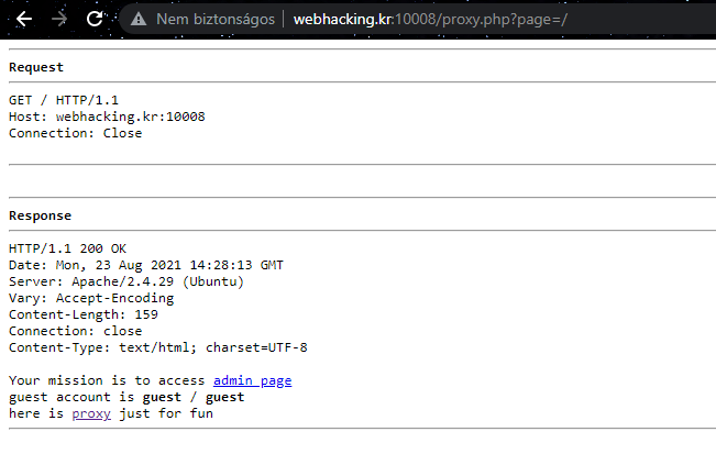 내부 서버에 웹 서버의 IP 만으로 접속을 할 수 있으므로 웹 서버에 있는 proxy라는 페이지를 이용하여 간접적으로 admin page에 접속해야 한다.