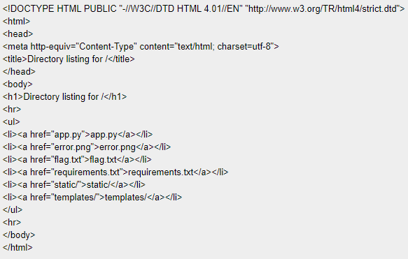 서버의 디렉토리가 표시되었다. / 바로 밑에 flag.txt가 있는 것을 볼 수 있다.
